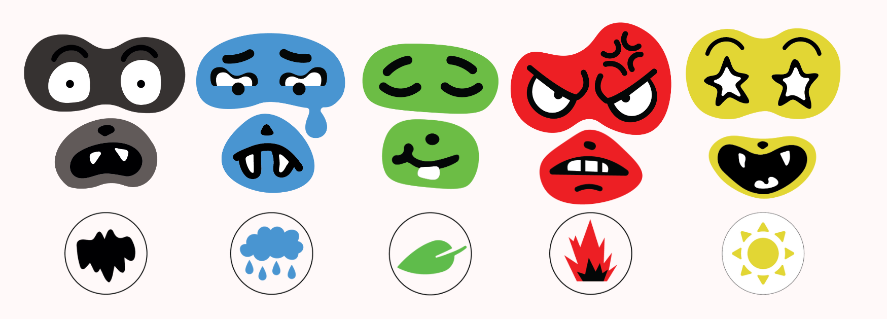 Apesar dos conjuntos de emoção, o boneco foi construído de forma que suas peças pudessem ser misturadas, possibilitando a formação de novas expressões e dando mais liberdade de criação para as crianças.